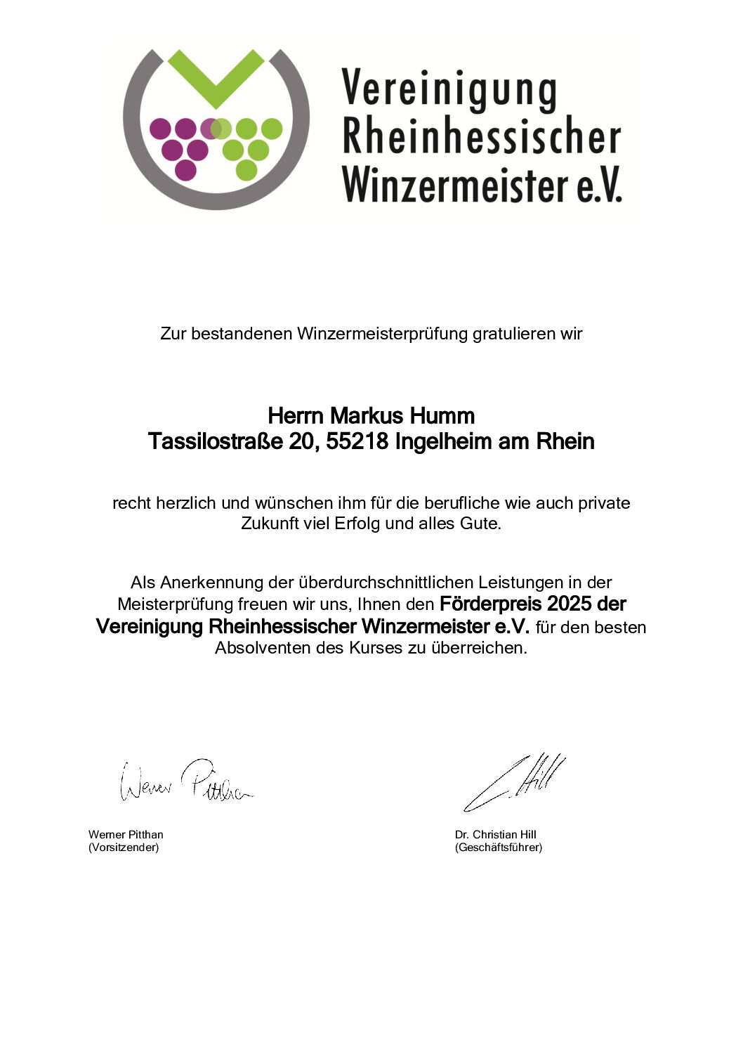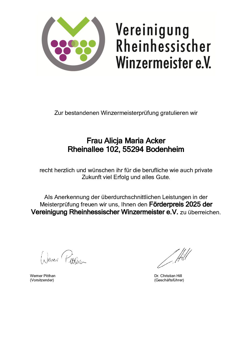 Förderpreis der Vereinigung Rheinhessischer Winzermeister