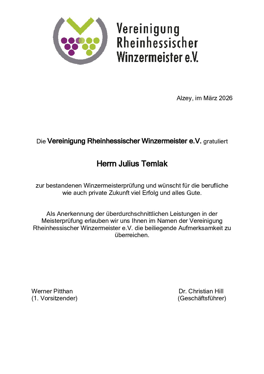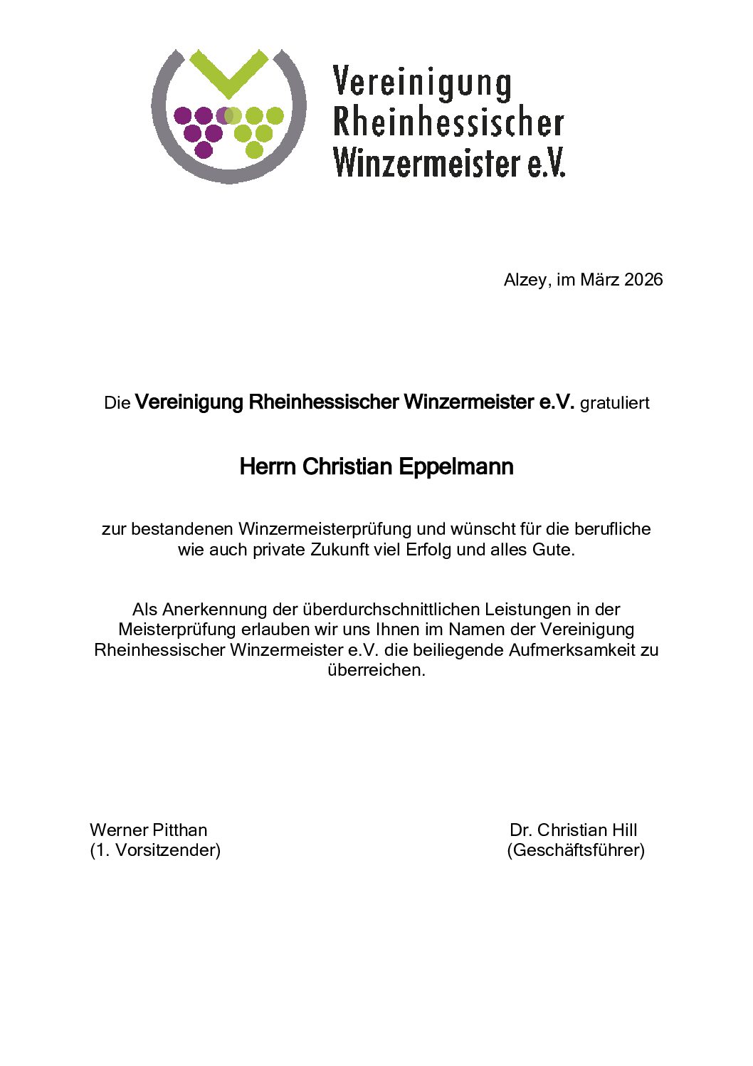 Ehrenpreis der Vereinigung Rheinhessischer Winzermeister e.V.