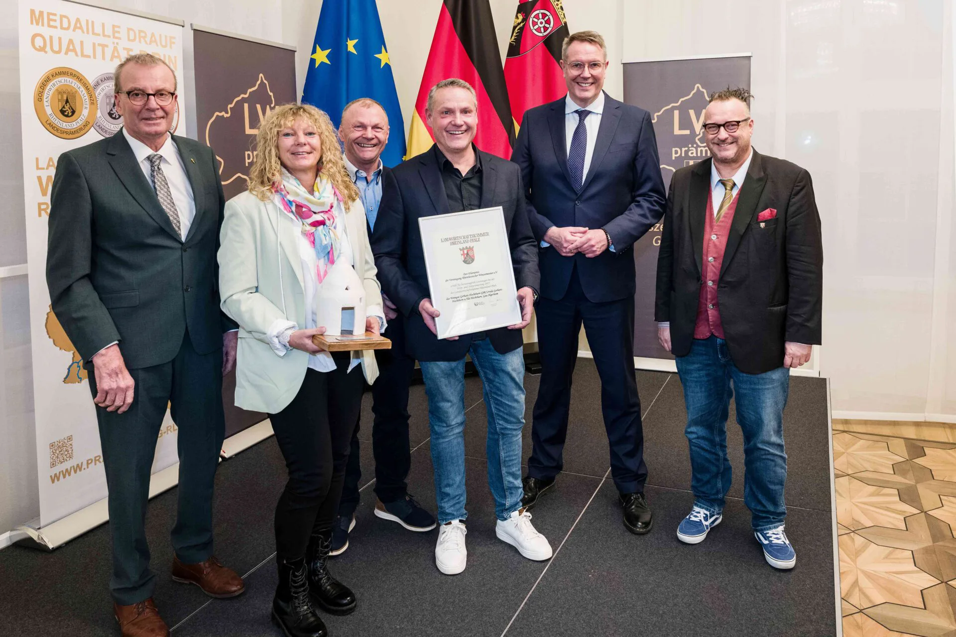 Am 28. November 2025 hat der 1. Vorsitzende Werner Pitthan in der Staatskanzlei in Mainz im Beisein des Ministerpräsidenten Alexander Schweitzer, des Staatssekretärs Andy Becht und des Direktors der Landwirtschaftskammer RLP, Herrn Michael Horper den Ehrenpreis an das Weingut Gerharz-Hochthurn aus Gau-Algesheim überreicht.